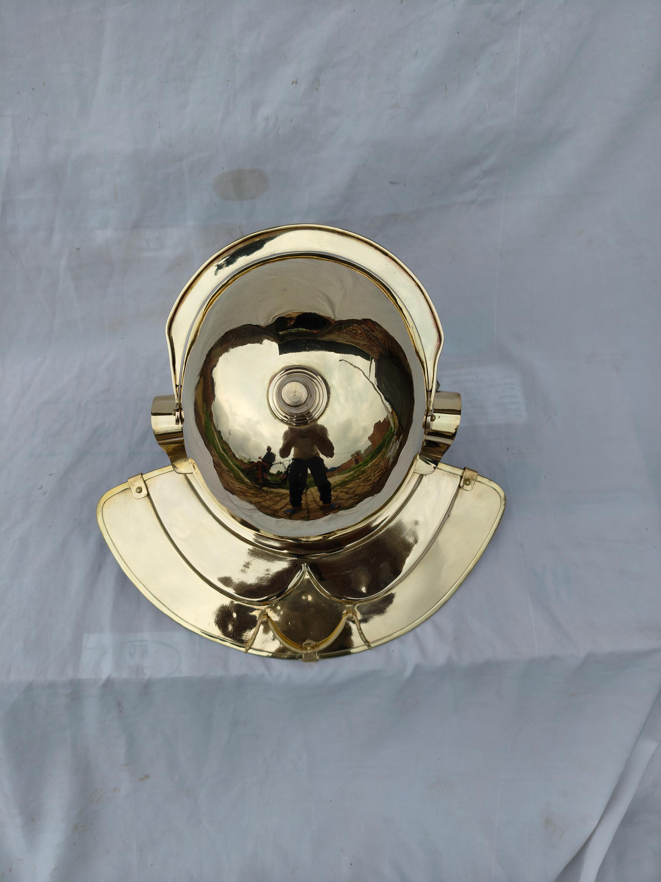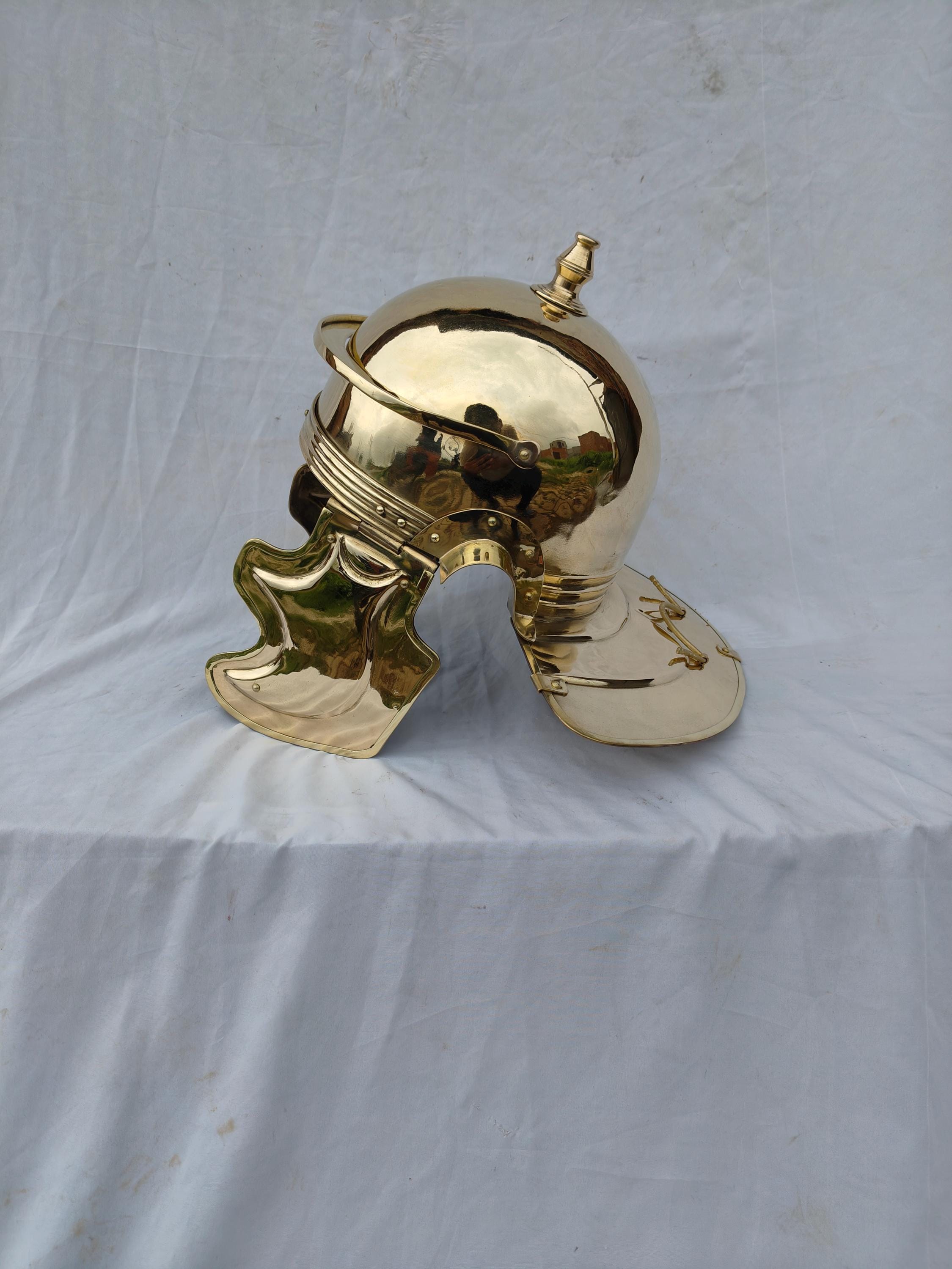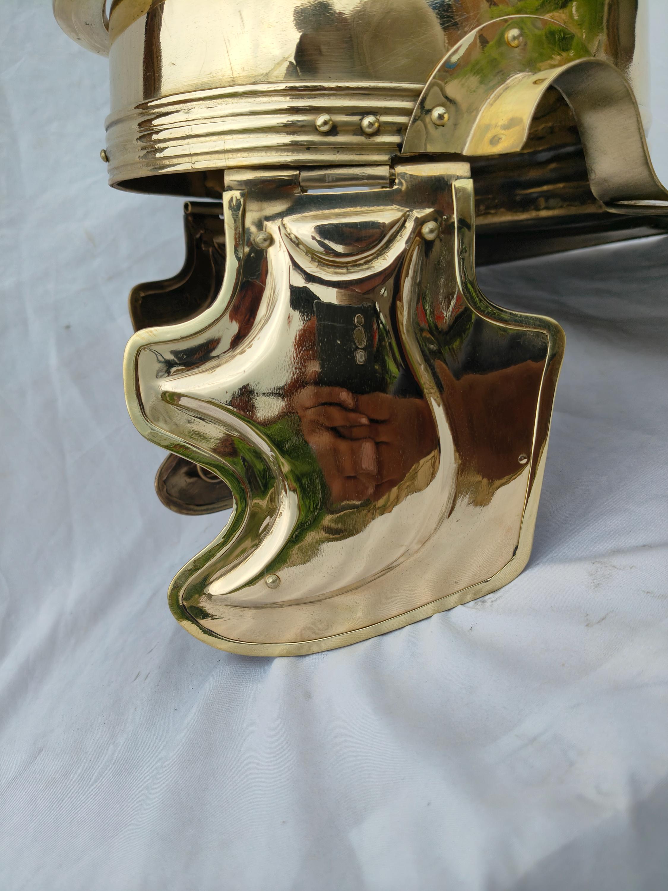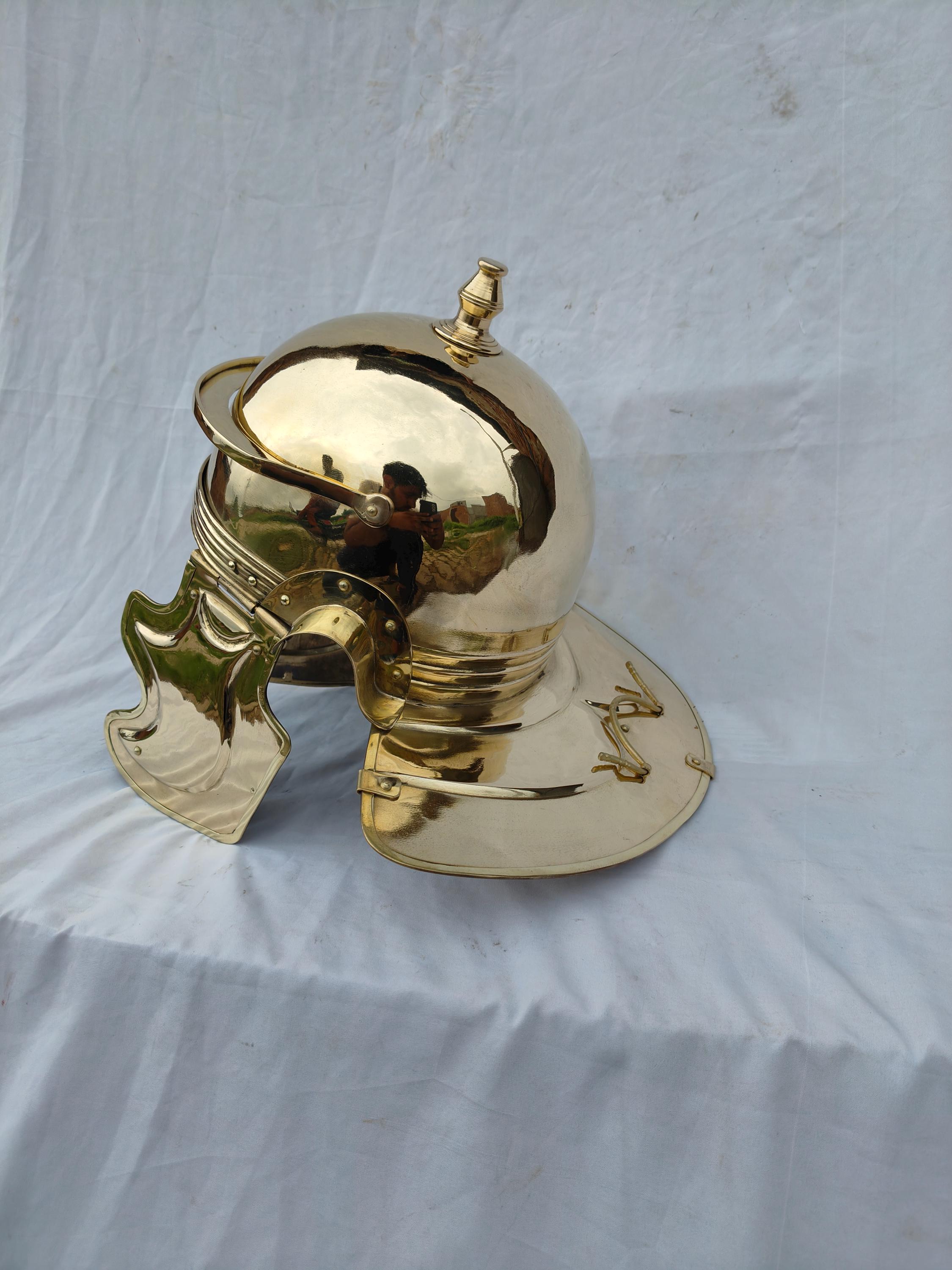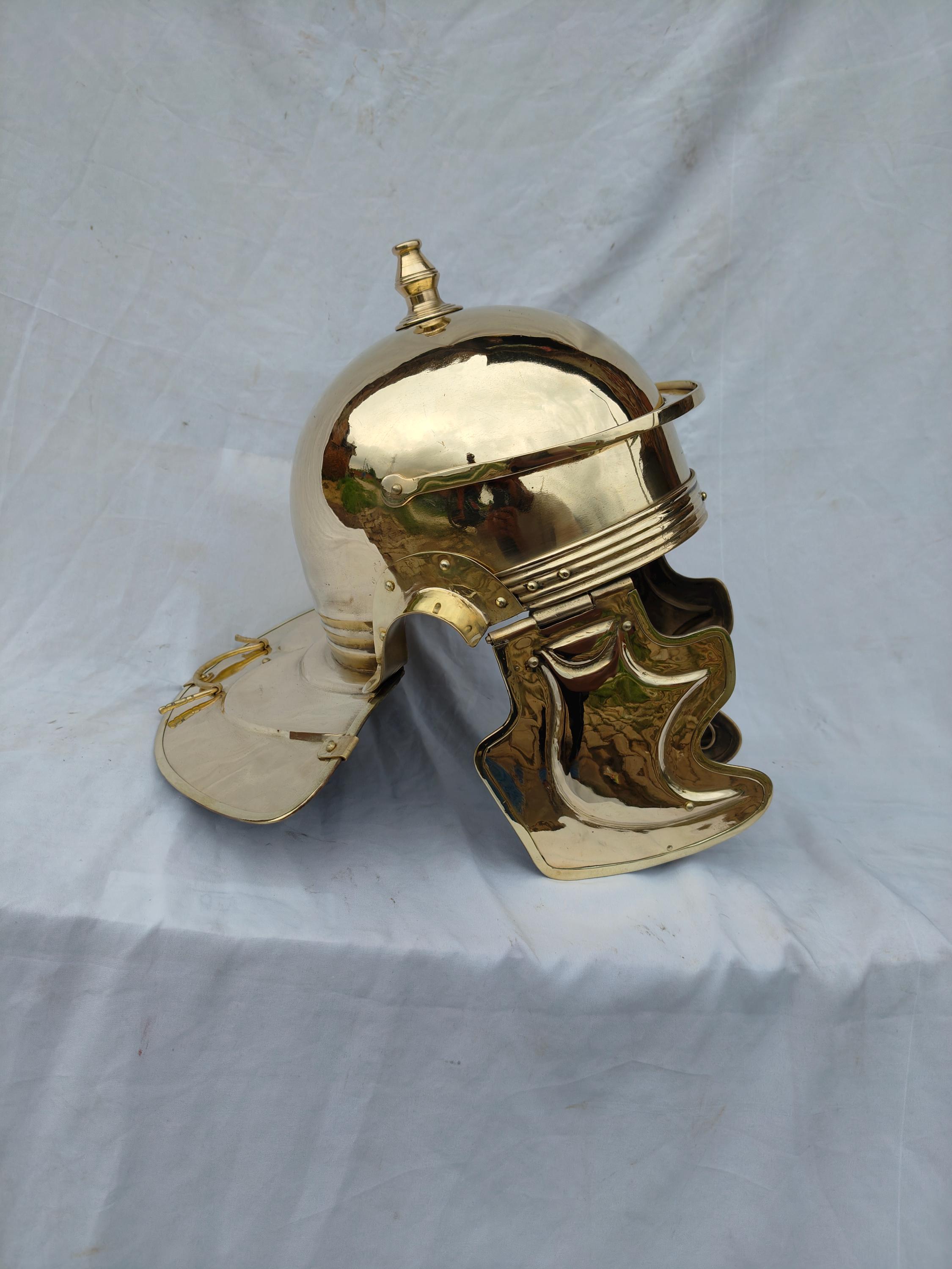 Imperial Helmet Colus Type -C- or Imperial Italian. Made in 1.2 mm thickness brass material. for reenactment use and home decor. Comes with thick cotton padding for comfortable wearing. Note :- Made inspired by the famous finding of Weisenau's helm. Handmade item.