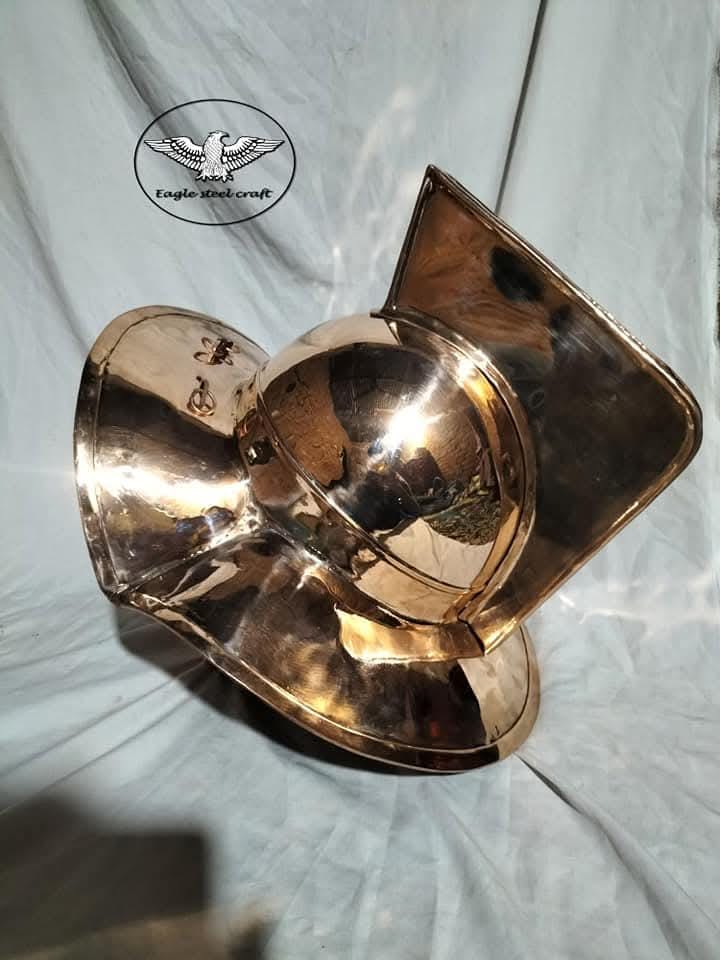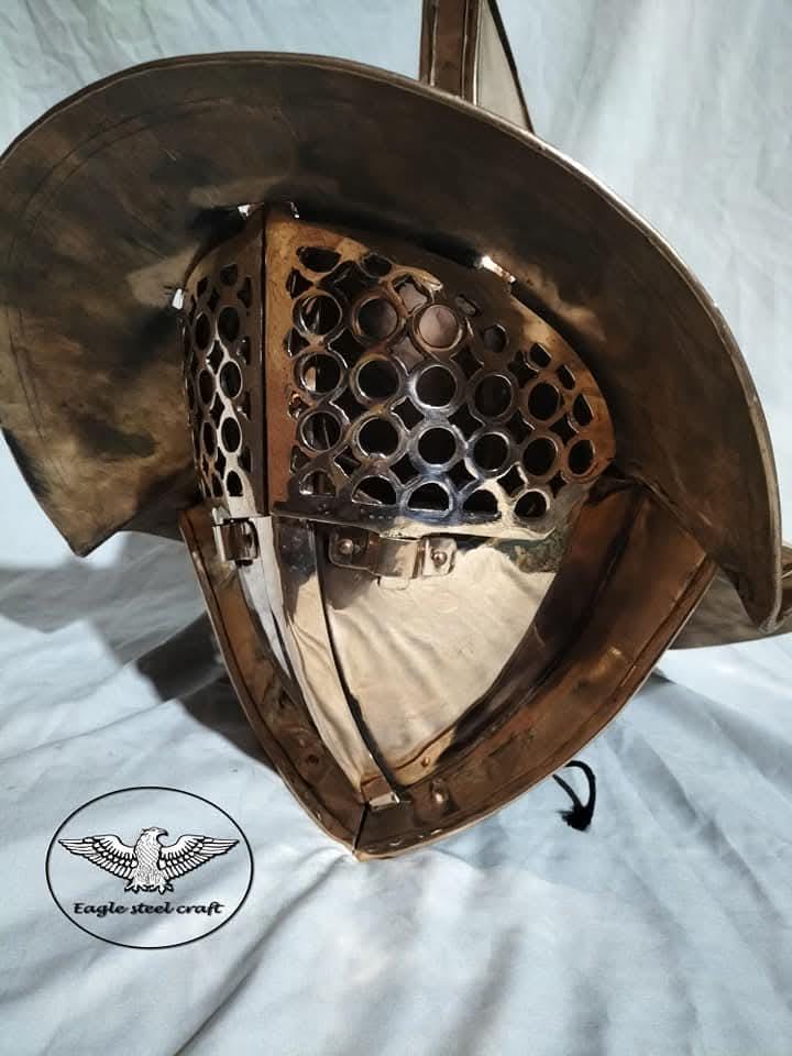 Bring the power of ancient Rome to life with this handcrafted Roman Murmillo Gladiator Helmet, made in durable 1.5 mm bronze for an authentic look and feel. Inspired by traditional gladiator armor, this replica is designed as a costume and collectible piece, perfect for LARP, reenactments, cosplay events, theater performances, or as a striking display item for history lovers.
