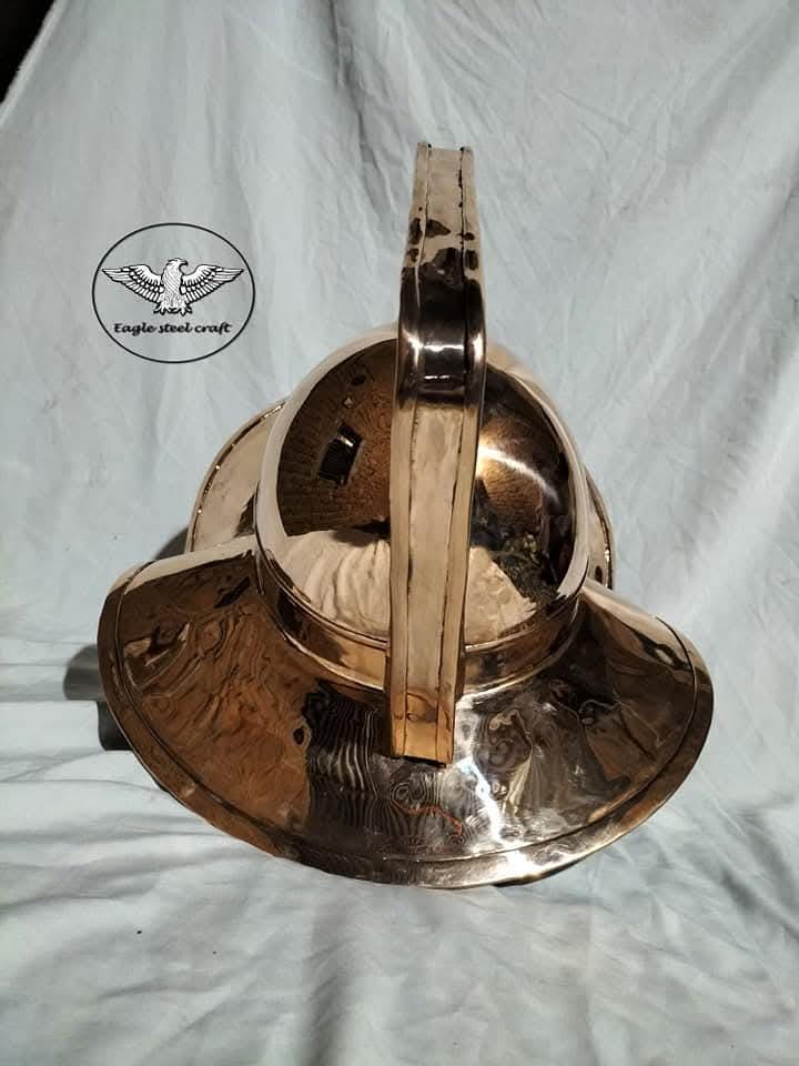The Roman murmillones gladiator helmet without relief depicting scenes from the Trojan War from Herculaneum 1st century CE Bronze.. Details :- Made in solid bronze material. best use for LARP/Reenactment. Hand made item with best quality finishing. I make the items as costume modification if you want any modification you can write me feel free.