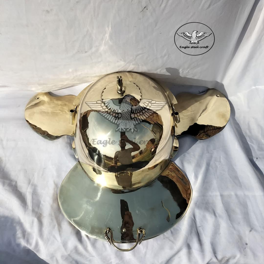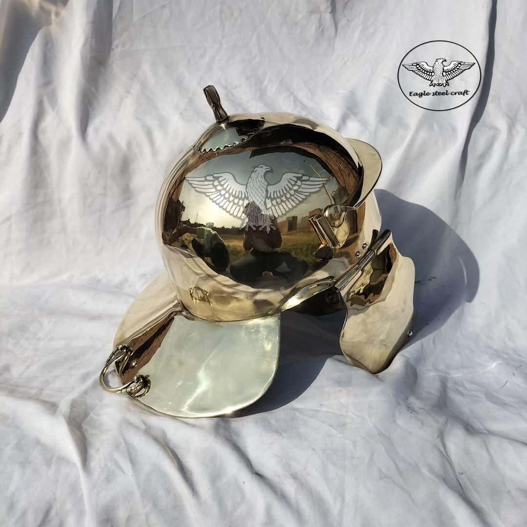 Step back into history with this handcrafted Roman brass legion helmet, inspired by 1st century AD military armor. Designed as a replica costume piece, this helmet is ideal for LARP, reenactments, cosplay, or as a unique collectible for history lovers.