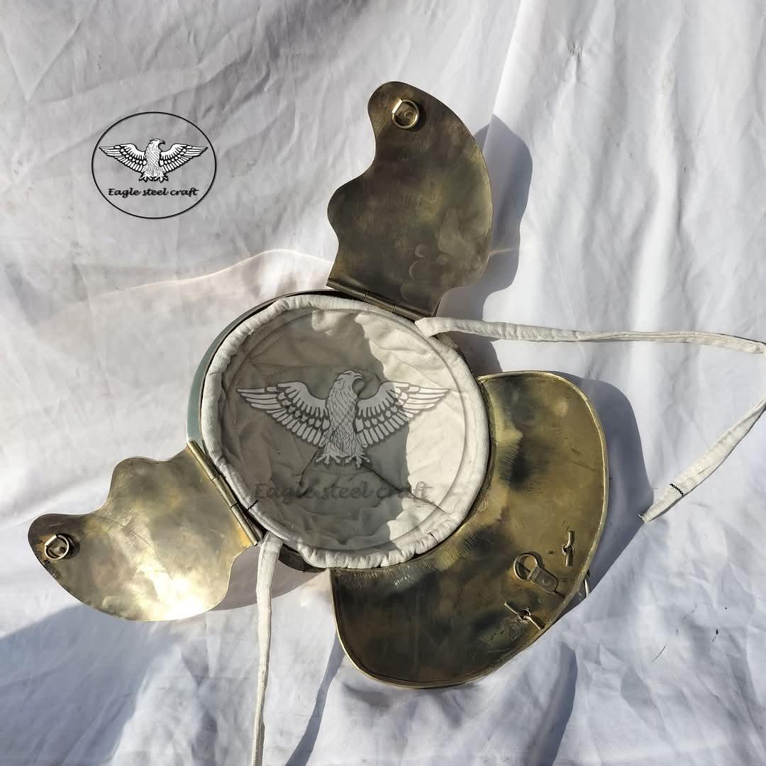 Made with polished brass and authentic detailing, it adds historical charm to events, stage performances, or themed displays. This wearable replica is crafted for enthusiasts who appreciate the artistry of Roman armor while remaining safe for costume and decorative use.
