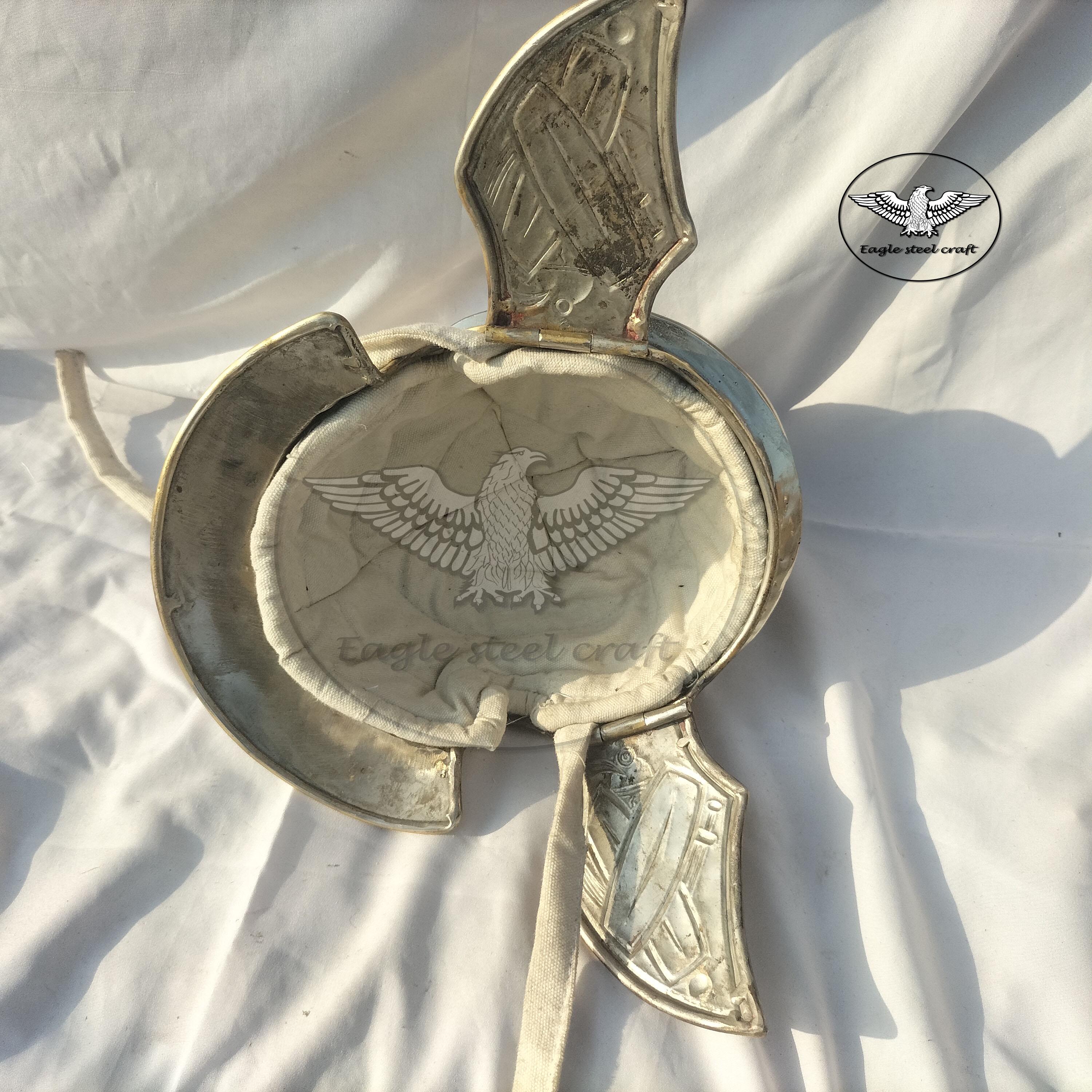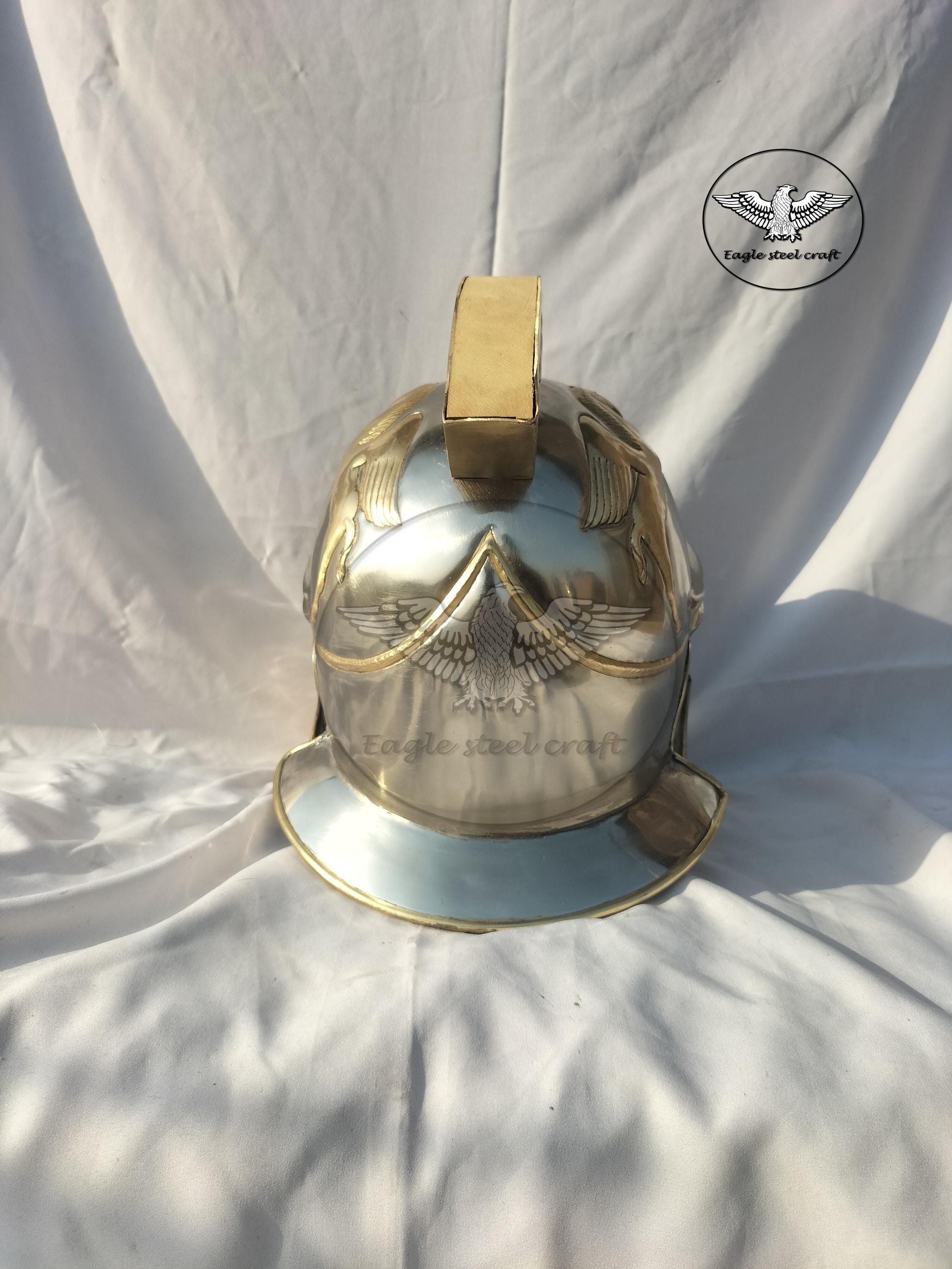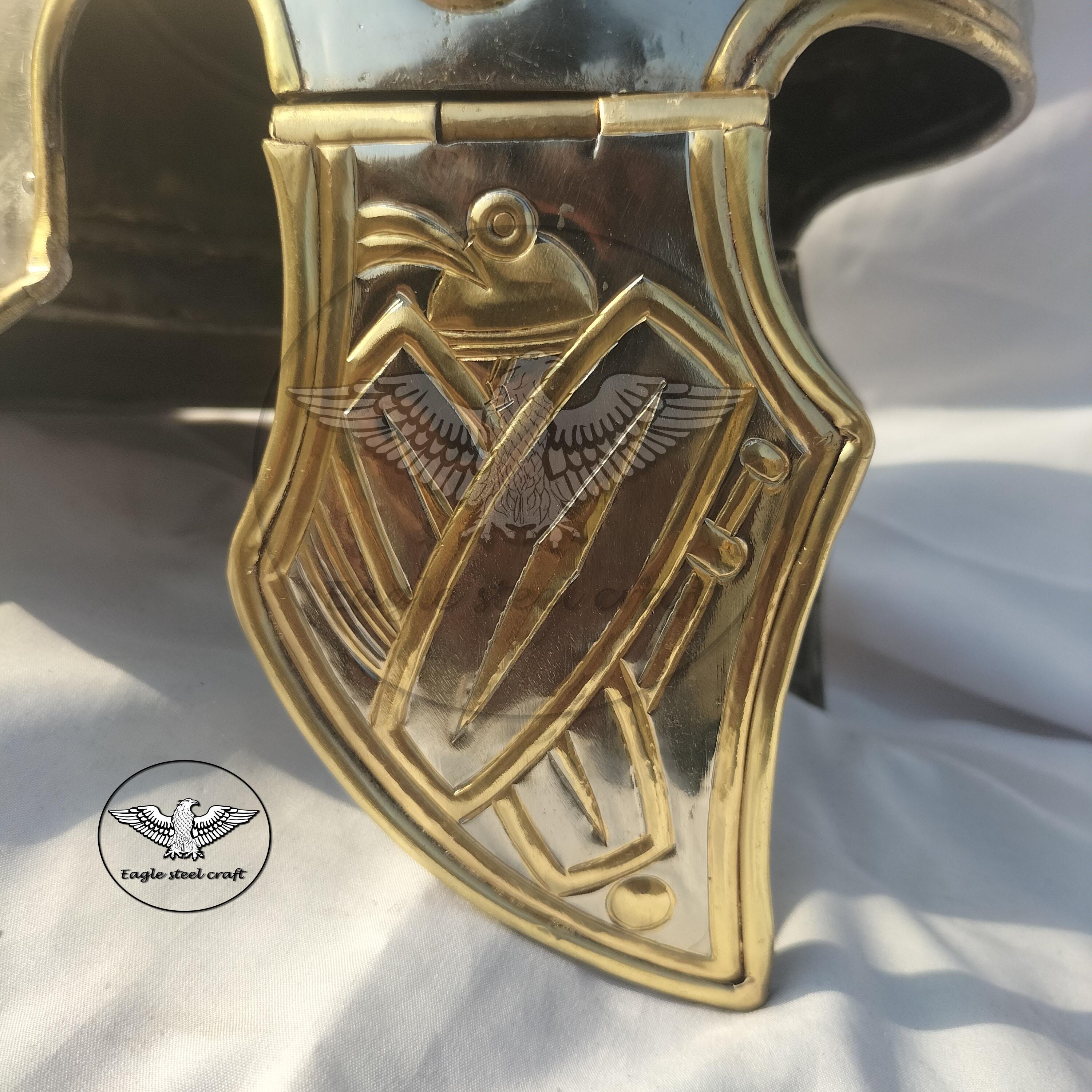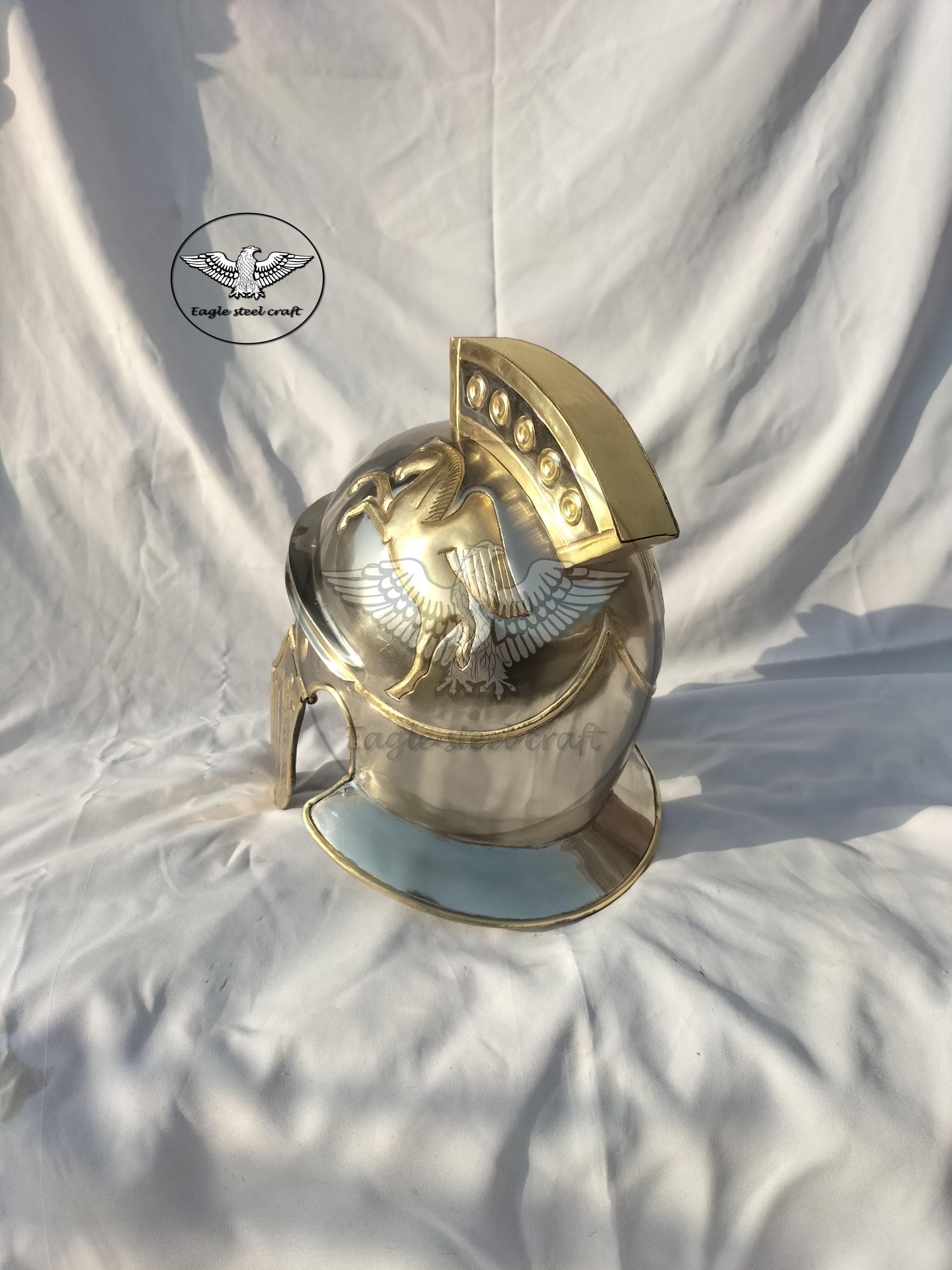 Medieval roman praetorian brass helmet This Praetorian helmet made from historical reliefs of the Flavian Period MARERIAL : Made in 1.2 mm thickness of brass . We will give you a padding for comfortably wearing it.