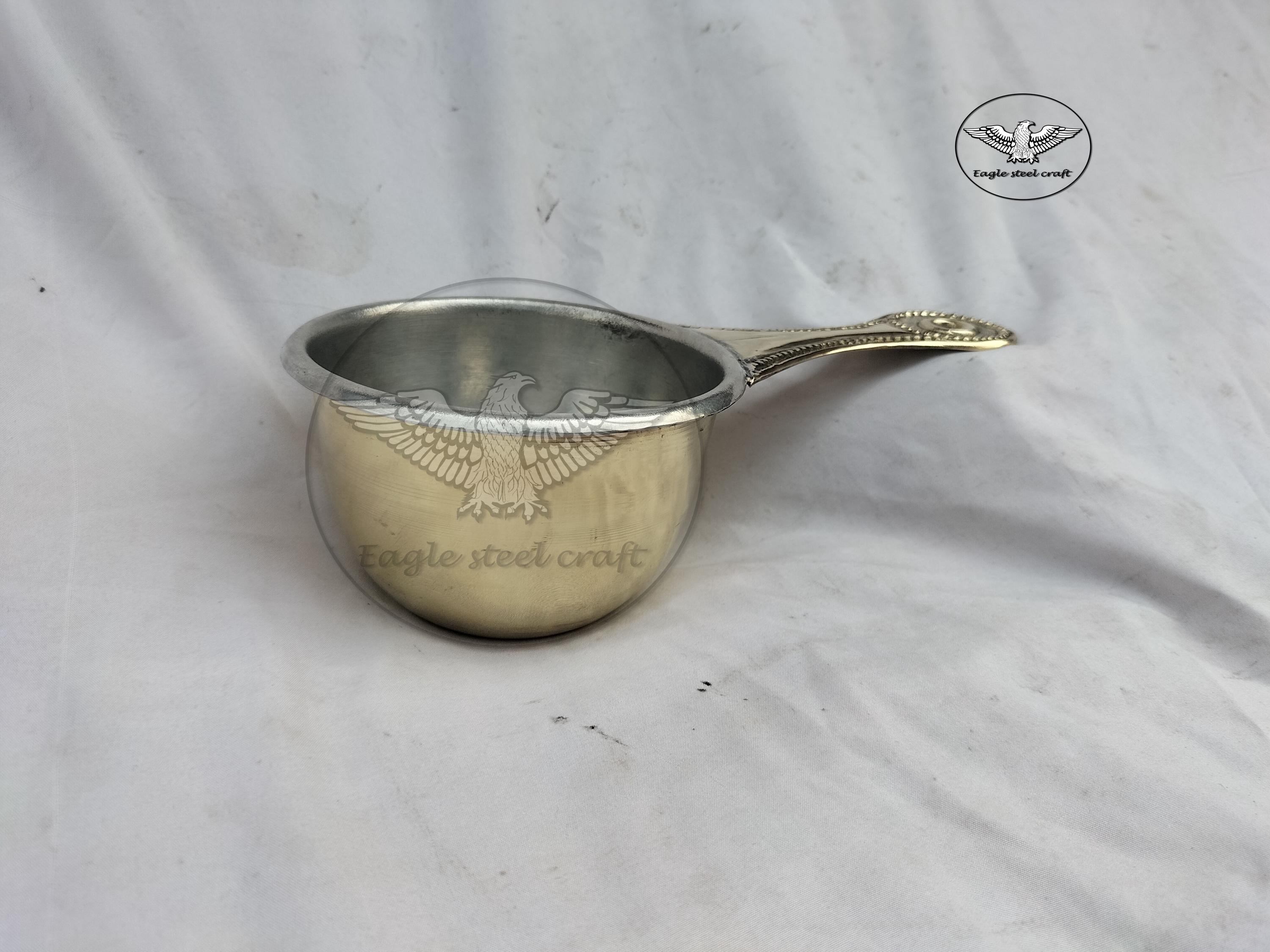 Roman patera is a saucepan believed to have been used by the Roman legions during battleground camps. It was an essential piece of equipment for the Roman army while they were on long marches during expeditions. The infantrymen carried such cooking essentials along with cutlery and other types of utensils of use. The Patera or other types of saucepans were also a part of households for cooking small portions of food for the family. This particular saucepan is believed to be used mainly for cooking soups. The original patera was found in the remains, but the base was missing, and the handle had some varying designs as per scholars. The bowl has a lip (a slight bent) along the rim to help pour liquids into cups.