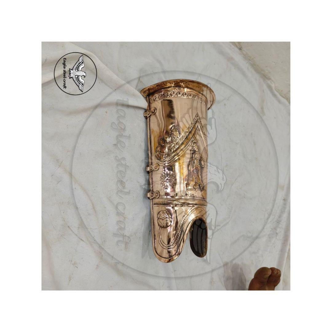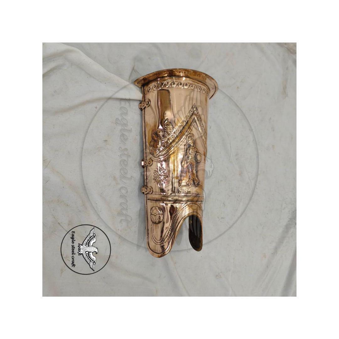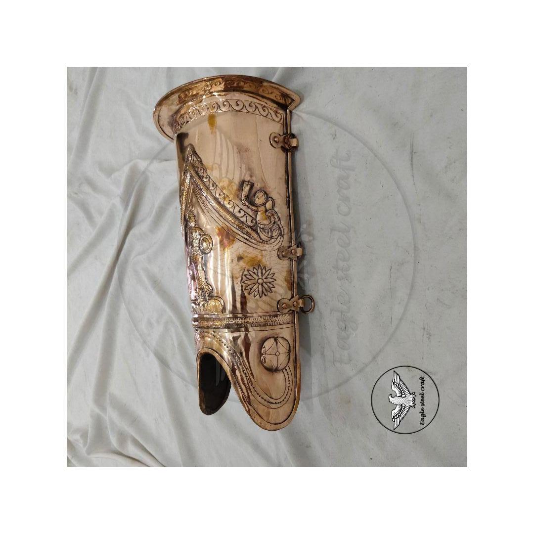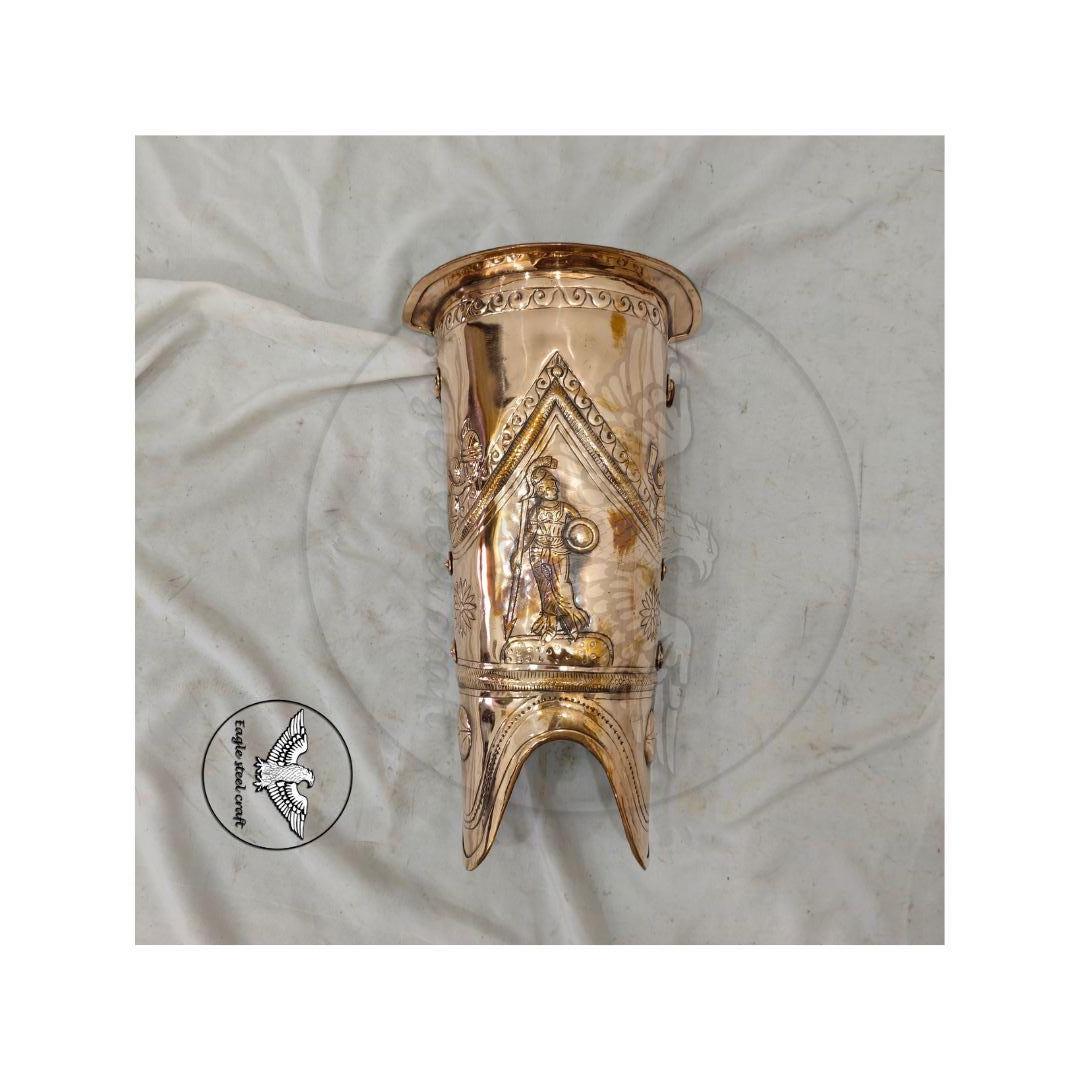 Roman gladiator shin guard depicting Hercules 1st century. Made in 1.5 mm solid bronze material for reenactment. with all handmade embossing design. best for use in gladiator reenactment SIZE :- Length 28 cm. You an tell me your leg size when you buy it i will customize all the size according to you. made by - Eagle steel handicraft
