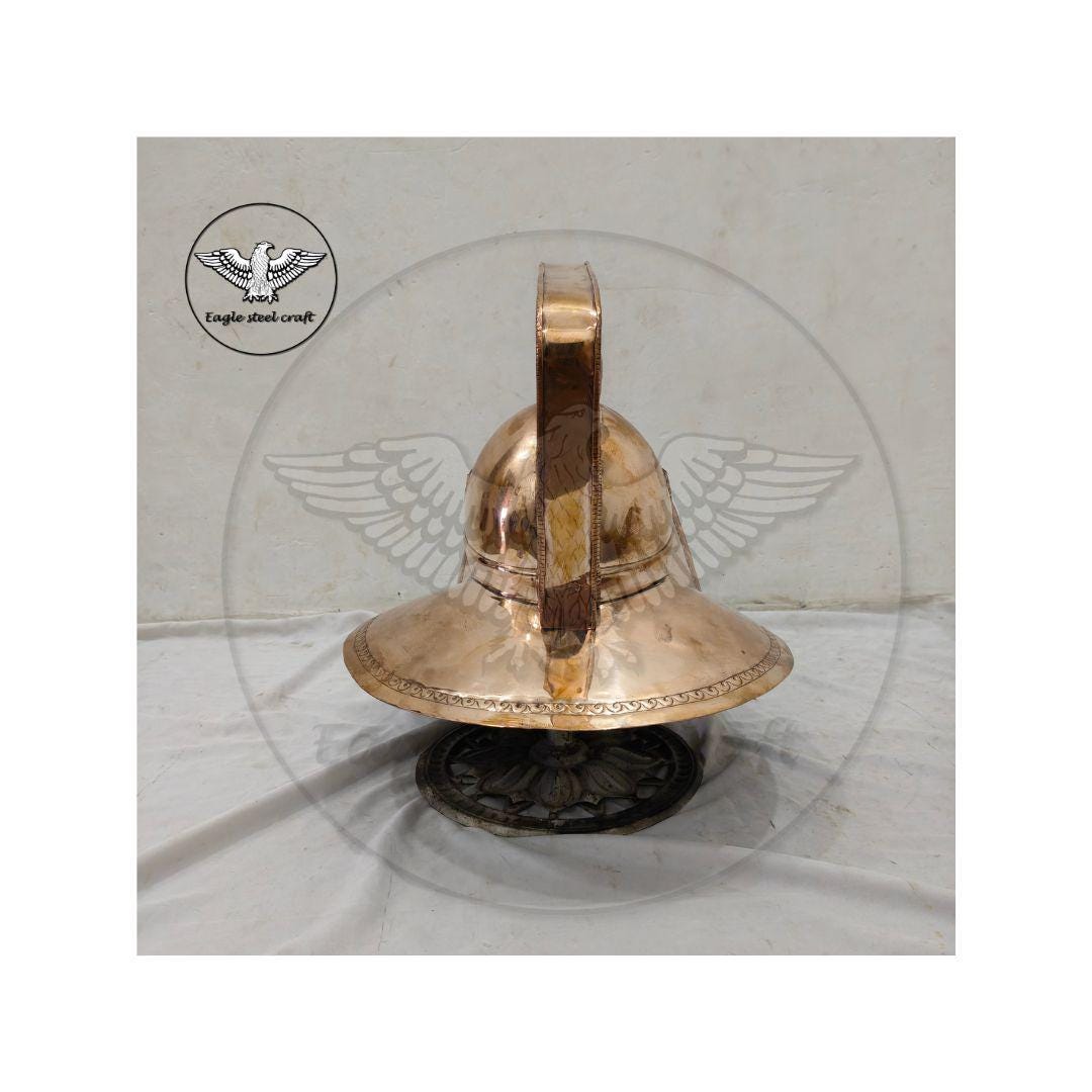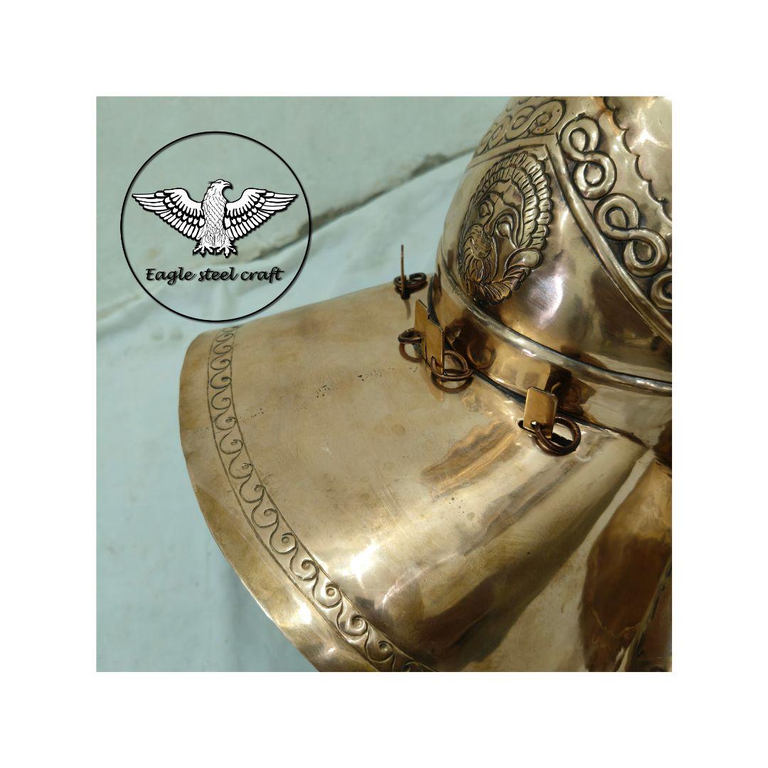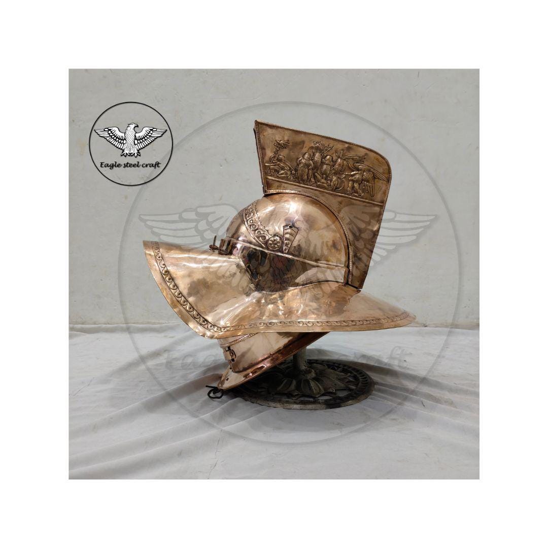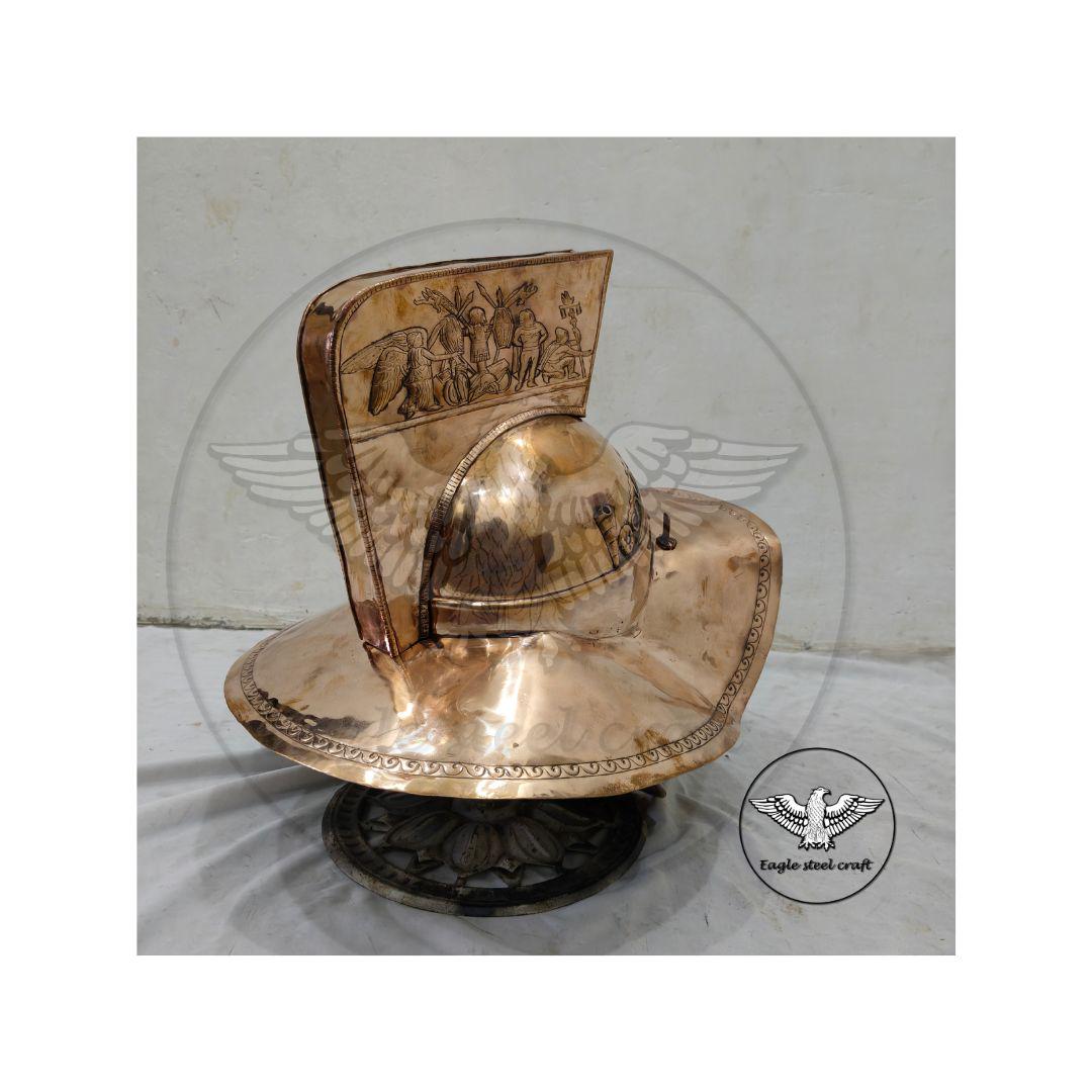 The Bronze medieval Gladiator Murmillo Helmet for reenactment. The thick padding comes with this helmet for comfort wearing. This helmet is absolutely comfortable for cosplay. Mash are made in Thick bronze. You can select you size in variant for comfortably wearing.