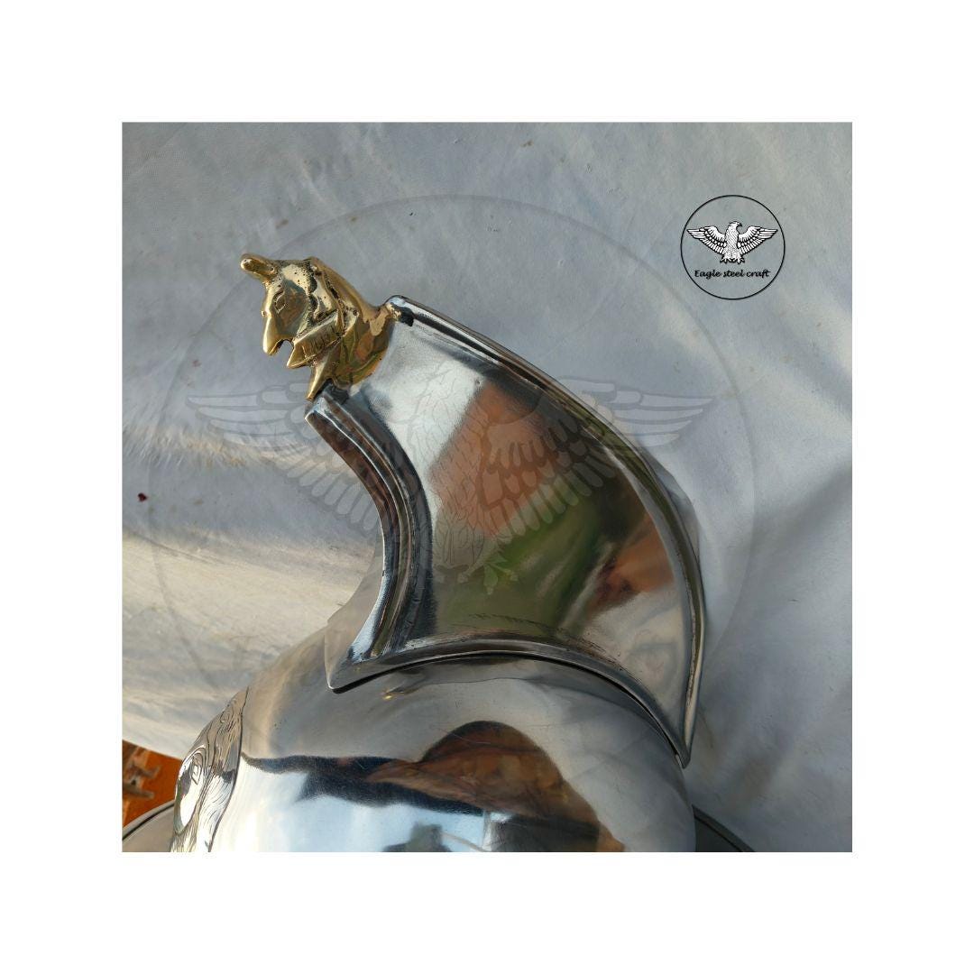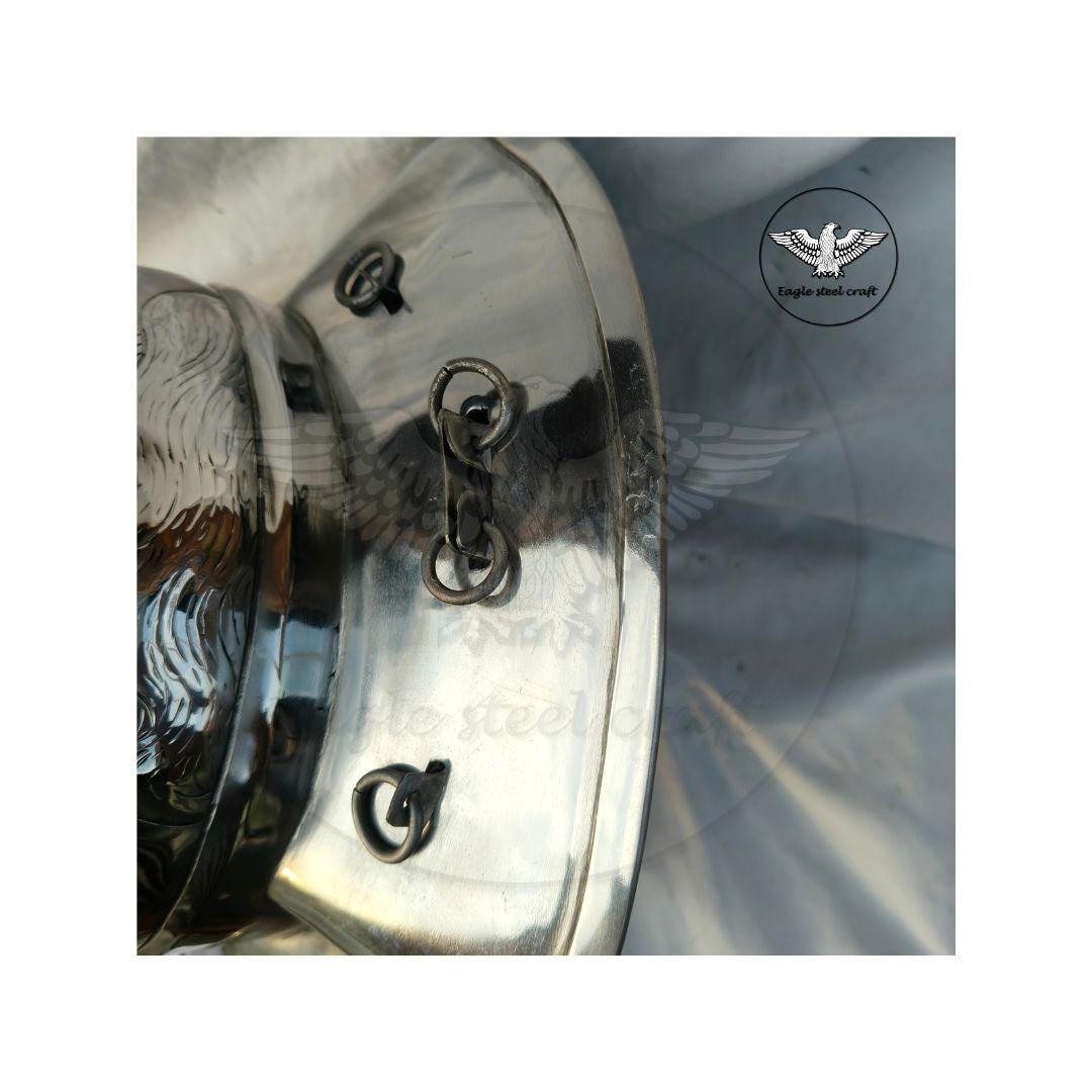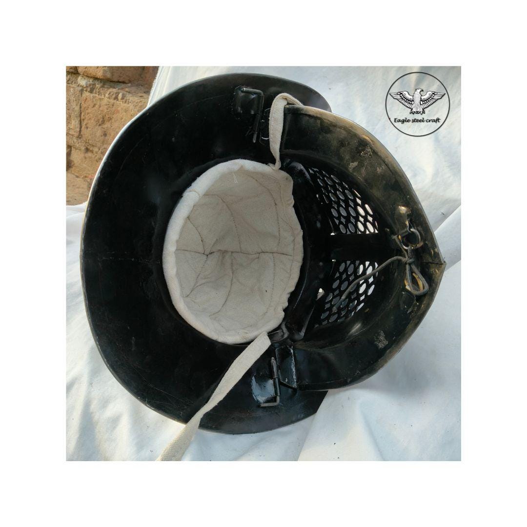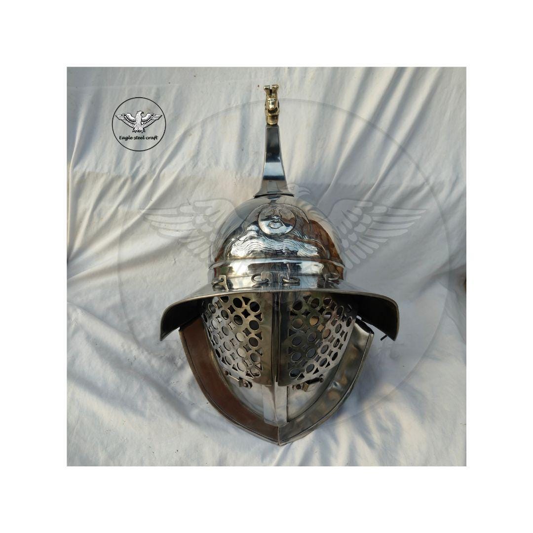 The medieval Gladiator Murmillo Helmet for reenactment. The thick padding comes with this helmet for comfort wearing. This helmet is absalutly comofrtable for cosplay. Mash are made in Thick mild steel. You can select you size in variant for comfortably wearing.