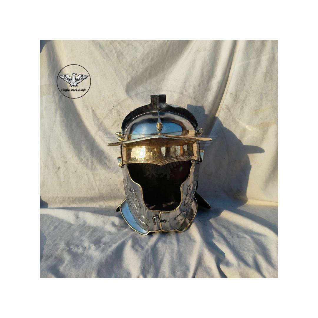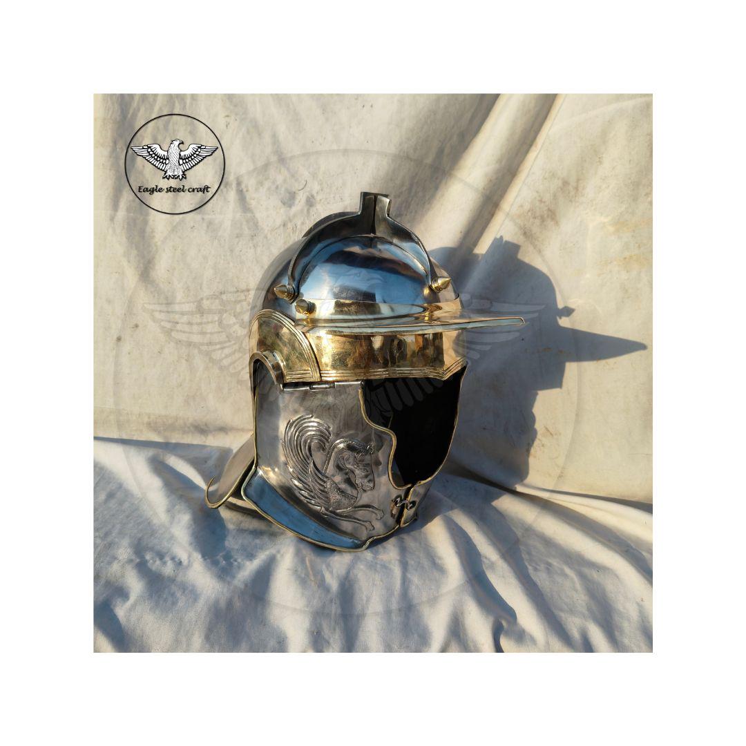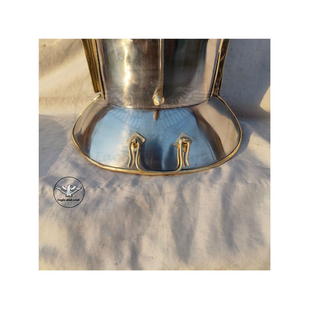 Historians believe it was worn by cavalry as well as by infantry. Comes with silver tin coating for protect from rust. Delivery includes cotton cap for wear underneath. The horse is embossed on both cheeks.