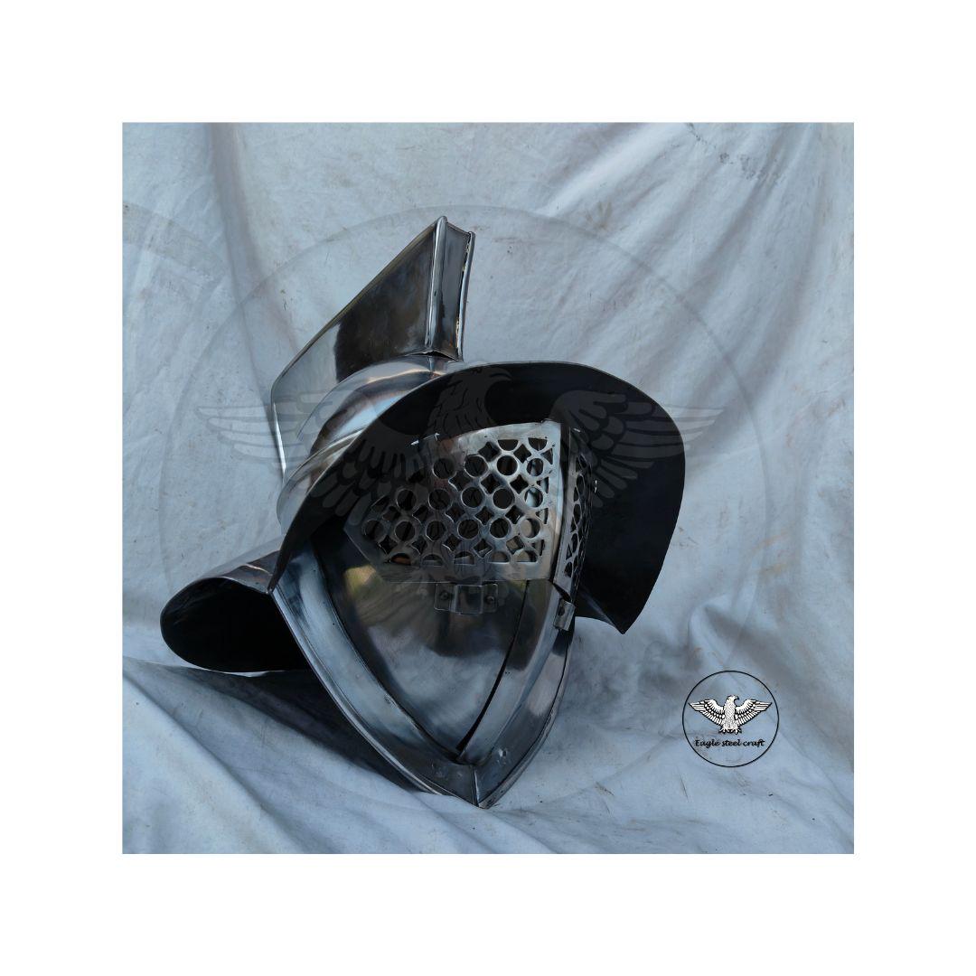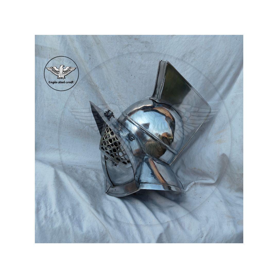 Bring the power of ancient Rome to life with this handcrafted Roman Murmillo Gladiator Helmet, made in durable 1.5 mm mild steel for an authentic look and feel. Inspired by traditional gladiator armor, this replica is designed as a costume and collectible piece, perfect for LARP, reenactments, cosplay events, theater performances, or as a striking display item for history lovers.