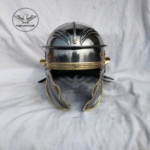 With its bold crest design and polished finish, the helmet makes an impressive addition to any historical costume or themed decor. The craftsmanship highlights the artistry of Roman armor while ensuring it is safe for decorative and costume use.
